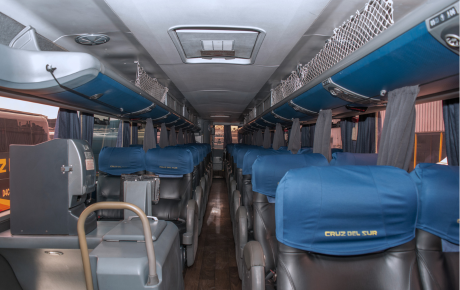 Bus que cuenta con un sistema de purificador de aire ECO3 que elimina virus y bacterias en más de un 95% durante todo el viaje.